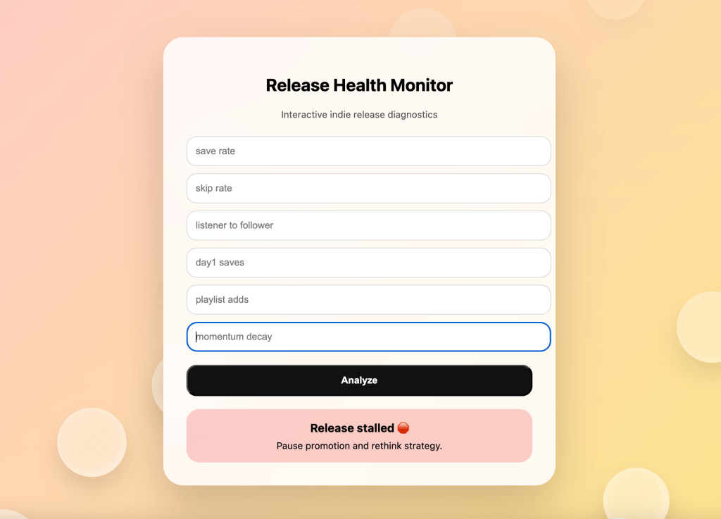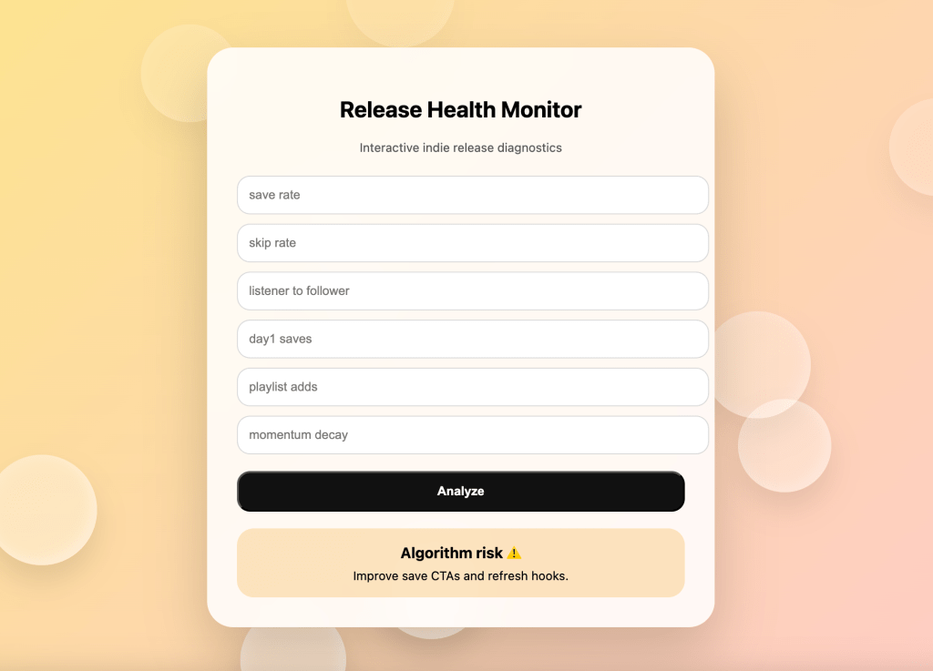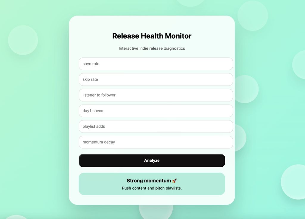 The Artist Release Health System is a diagnostic tool designed to measure, improve and predict the performance of new music releases – before, during and after launch.